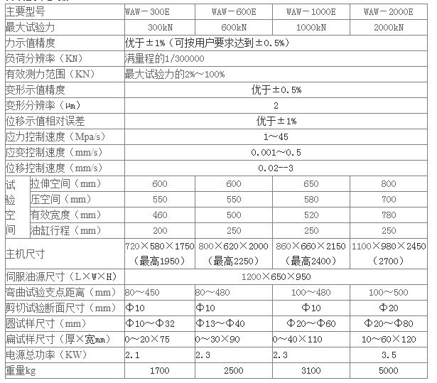主要用途 微機(jī)控制電液伺服試驗(yàn)機(jī)采用雙空間油缸下置結(jié)構(gòu)。該試驗(yàn)機(jī)主要用于金屬材料的拉伸、壓縮、彎曲、剪切等試驗(yàn);可實(shí)現(xiàn)等速率加荷、等速率變形、等速率位移等試驗(yàn),并可在一次試驗(yàn)中實(shí)現(xiàn)力、變形、位移三段控制,各控制之間可平滑轉(zhuǎn)換。各項(xiàng)技術(shù)參數(shù):