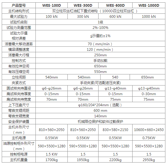 濟(jì)南試金WES-D數(shù)顯式液壓萬(wàn)能試驗(yàn)機(jī)主要用于金屬材料的拉伸、壓縮、彎曲等力學(xué)性能試驗(yàn),增加簡(jiǎn)單的附件后可對(duì)水泥、混凝土、磚、瓦、橡膠及其制品進(jìn)行檢測(cè)。