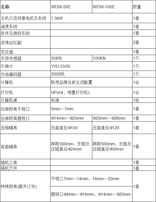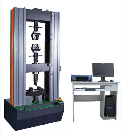濟南時代試驗機廠生產的該試驗機采用雙空間門式結構,標準為上空間拉伸,下空間壓縮、彎曲,拉壓空間可相互轉換。本電子萬能試驗機主機部分由四根導向立柱、上橫梁、中橫梁、工作臺組成落地式框架,調速系統安裝在工作臺下部。由調速精度高、范圍寬、性能穩定的日本松下交流伺服電機通過同步齒形帶減速系統帶動滾珠絲杠副旋轉,滾珠絲杠副驅動中橫梁,帶動拉伸輔具(或壓縮、彎曲等輔具)上下移動,實現試樣的加荷與卸載。該結構保證機架有足夠的剛度,同時實現高效、平穩傳動。電子萬能試驗機主機主要零部件在加工中心進行加工,保證了主機的精度。滾珠絲杠為E5級。